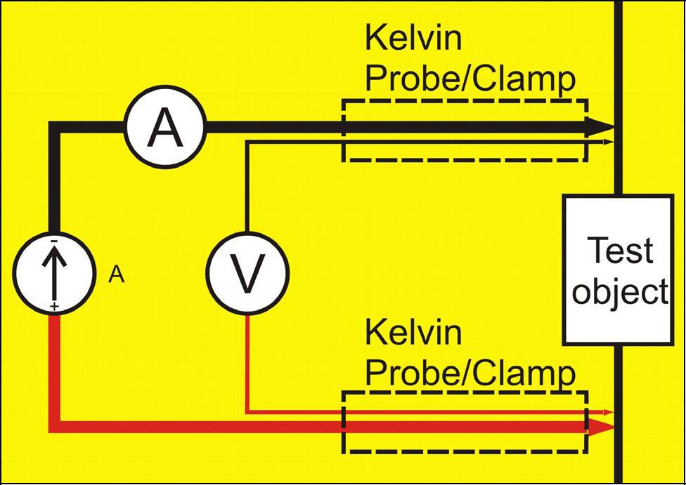 開爾文探頭(包含在BD-59090內(nèi))在4線開爾文測試中被使用。這是測試電阻連續(xù)性,確保所有接觸和導(dǎo)線電阻得到補償?shù)姆椒?,大大加強了測試的精度。每一個開爾文探頭裝有兩個末端,一個用于產(chǎn)生電流,另一個用于測量微弱的電壓存在