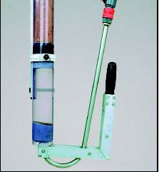 ?取樣前,經(jīng)硬化處理的切割頭放到取樣管底部,頂部則放好墊圈。切割頭和墊圈以皮帶連接,皮帶收緊,使取樣管在兩者之間得到很好的固定。這個結構使各種長度(*長1.5米)的取樣管都可使用