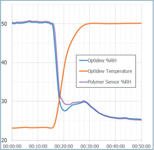 在氣候試驗(yàn)箱測(cè)量時(shí),Optidew能夠直接跟蹤溫度和濕度的變化,不用像傳統(tǒng)的冷鏡儀表那樣耗時(shí)。