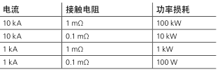 10 kA時0.1 mΩ電阻使功率損耗達(dá)到10 kW。一個點(diǎn)上有這樣的功率損耗在必然導(dǎo)致溫度的升高,造成過熱和前期故障