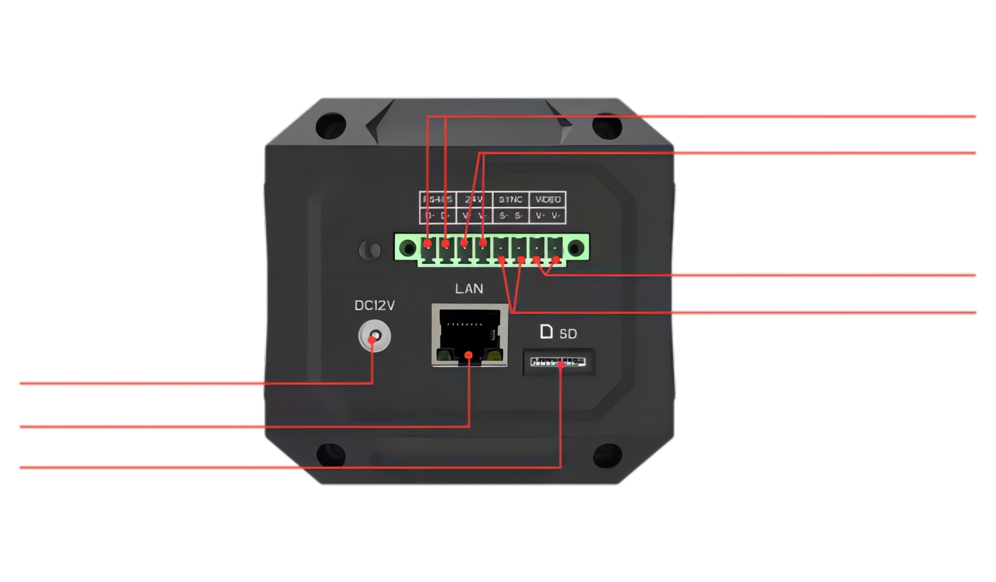 | 其他接口 | 485通訊接口、繼電器開關(guān)、同步觸發(fā)、模擬視頻、micro SD卡接口 | ||