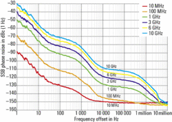 ?低SSB相位噪聲,典型值:-130dBc(20 kHz載波偏置,f = 1 GHz, 1 Hz測量帶寬)