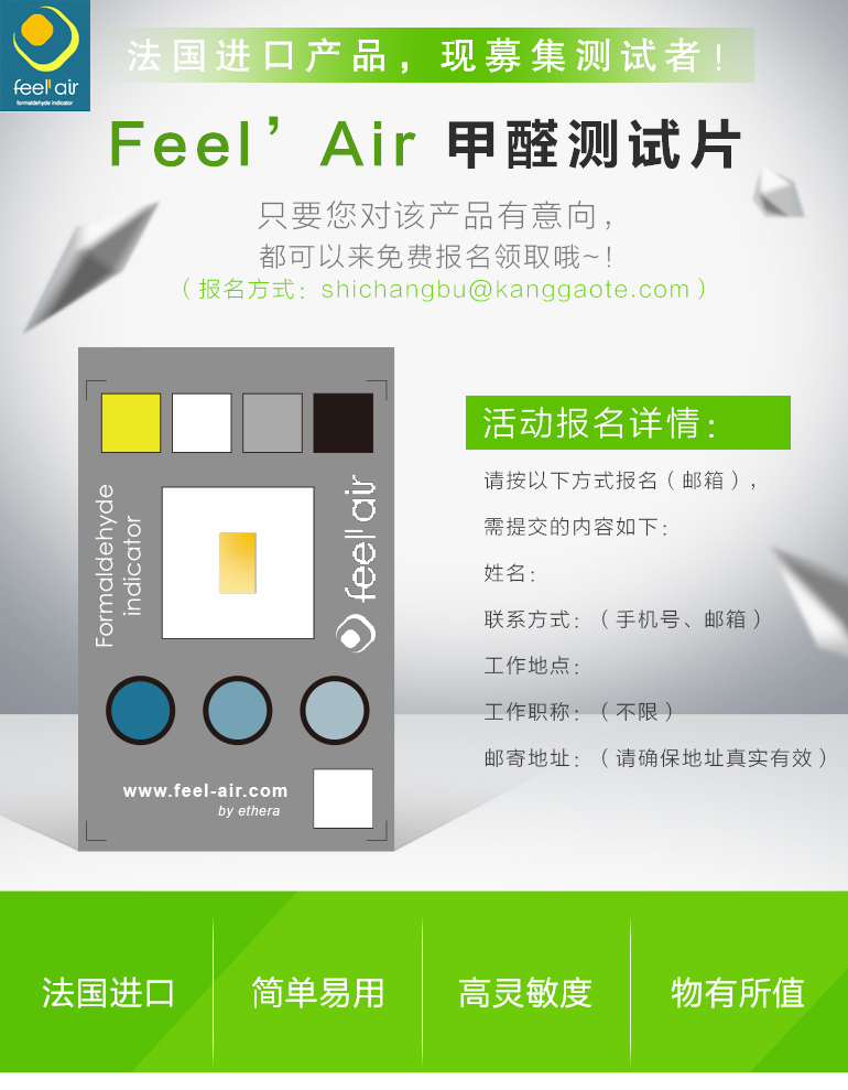 法國(ETHERA Feel'Air)甲醛測試片募集測試者活動火爆進行中