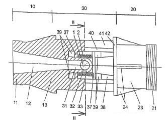 該發(fā)明的目的是,給出一個(gè)磁感應(yīng)的流量計(jì),它克服上述的問(wèn)題并且其塑料外殼不僅耐受源自測(cè)量液體的內(nèi)壓,而且也耐受拉應(yīng)力以及其它熱的和機(jī)械的負(fù)荷。